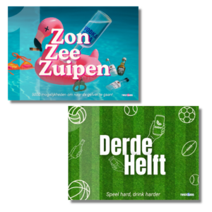 Natuurlijk blijft het twisten van de spellen een belangrijk onderdeel van de ervaring. Daarom hebben we het originele concept behouden. Met maar liefst 5000 unieke spelcombinaties. Of je nu op vakantie bent, een dagje naar het strand gaat of alvast in de stemming wilt komen voor een avondje stappen in het buitenland: dit spel past in elke koffer en is hét perfecte ingrediënt voor goede vibes, harde lachbuien en onvergetelijke herinneringen. Dus gooi het in je tas en laat het avontuur beginnen!