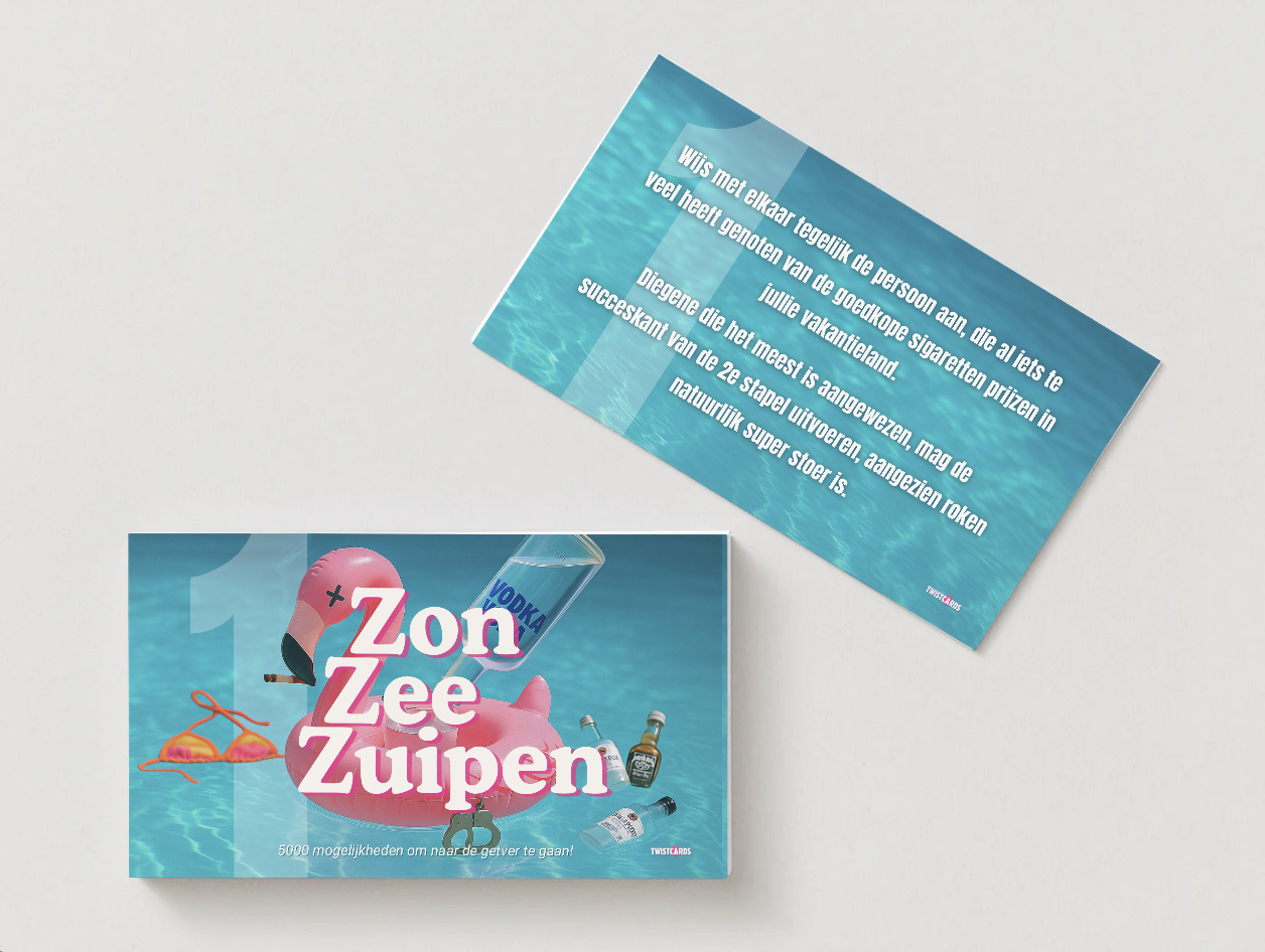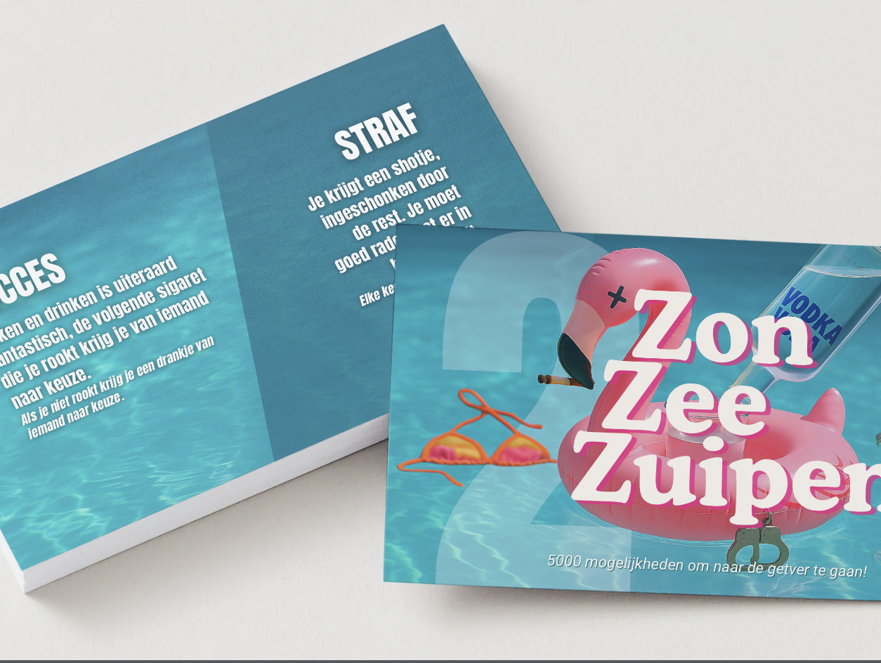 De zon schijnt, de drankjes staan koud en de vakantie is begonnen. Met Zon Zee Zuipen haal je het ultieme vakantie drankspel in huis voor jou en je vriendengroep.